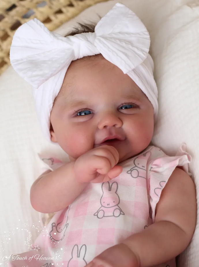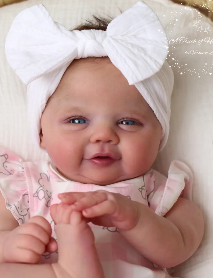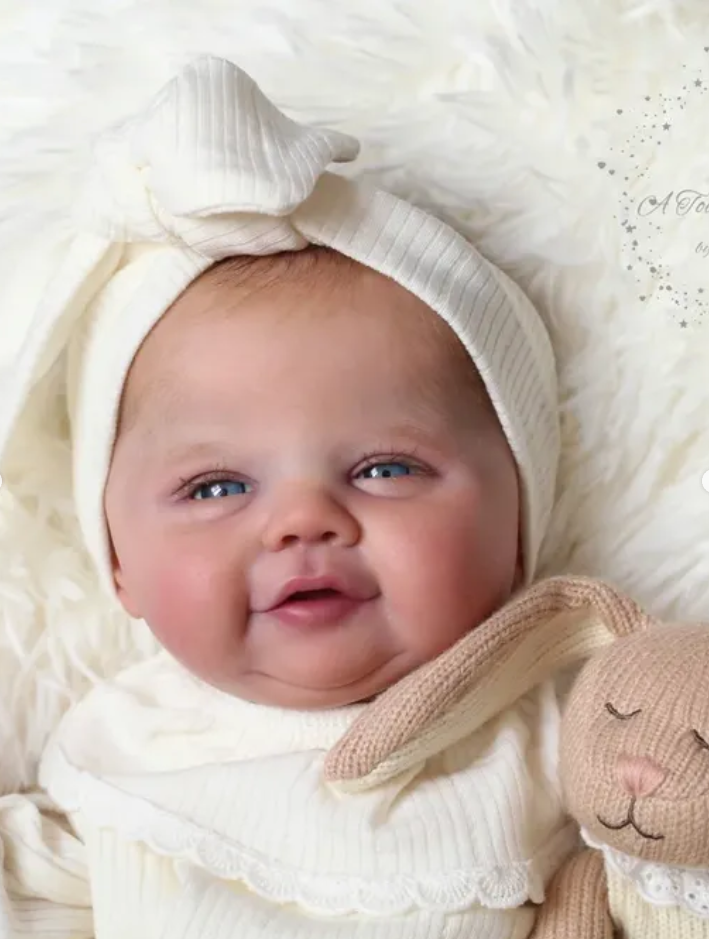 Kit de 21″. Precisa cuerpo de miembros completos apertura lateral y ojos de 18mm. No es un bebe reborn ya elaborado. Se refiere al material para su realización
